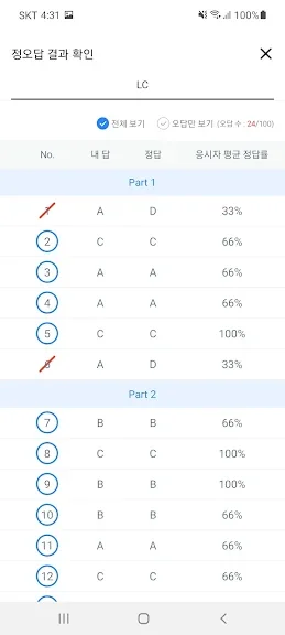 토익시험 정답/응시자 평균점수 즉시공개