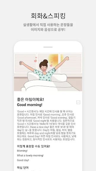 - 회화를 다양한 방법으로 공부하고, 연습해 볼 수 있어요. 하루하루 달라지는 회화 실력을 느껴보세요!