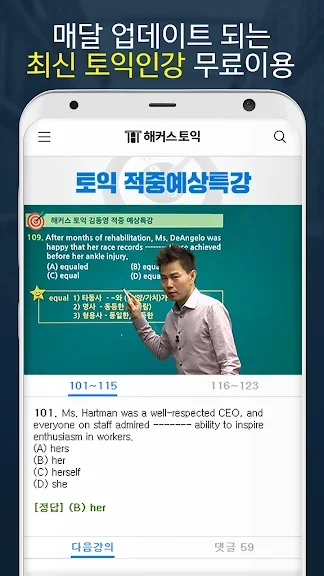 ▶ 토익공부가 처음이라서 어떻게 시작할지 너무 막막했는데 무료로도 유익한 강의들이 너무 많아서 많은 도움이 되었어요. 앞으로도 이 어플을 계속 유용하게 이용할 것 같아요!