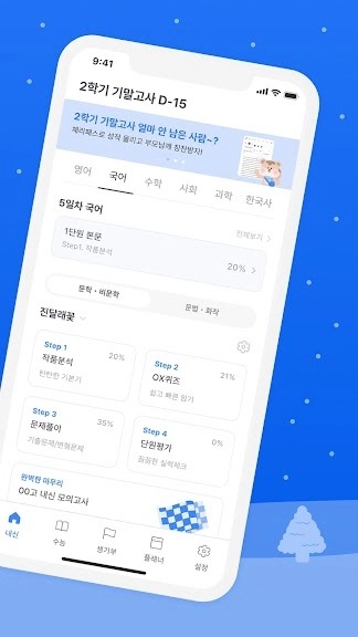 ▶ 안녕하세요 이 앱을 이용하는 고3 학생입니다! 이 앱 이용 후 스스로 공부하는 습관이 잡혀서 1학기 성적이 많이 상승한것 같습니다 감사합니다! 일반 과외보다는 이 앱 하나로 공부하는 것이 제게 효율적이였던 공부 벙법이였던것 같아요 다만 이번 2학기에 언매,화작이 수능완성으로 내신을 준비하게 되었는데 이 앱에는 그 교재가 없는 것 같아 아쉽습니다 그 교재만 추가해 주신다면 이번 중간고사도 잘 볼 수 있을 것 같습니다!
