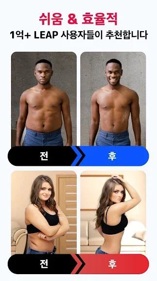 저희 앱을 꾸준히 이용하면 단 몇 주만에 신체가 변하는 것을 느낄 수 있게 됩니다.