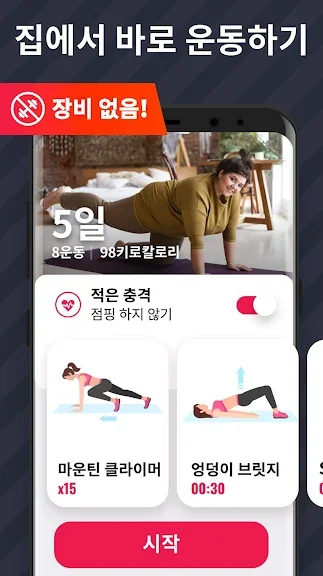 ▶ 쓰신분들 층간소음 때매 못한다고하는데 그거 그냥처음 엡 깔고 실행할때 무릎에 문제가 있나요 질문에서 점핑 안한다고하면 됩니다 그리고 광고도 안 심하고,매뉴도 깔끔한데 현질 유도가 없어요 난이도는 평소에 운동을안하시다 하면 쉬움으로 하면 되는데 궂이 별점을1점준분들 어려움으로 골라놓고 힘들다 하는건.... 그만하겠습니다