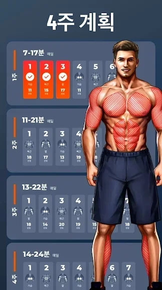 초보자 및 프로 모두를 위한 3 단계의 난이도가 있습니다. 전문 피트니스 코치가 디자인한 이 앱은 남성의 문제 부위, 배, 가슴을 집중 공격해 빠른 체중 감량 및 복근 만들기를 도와줍니다. 매일 다른 운동으로 쉽게 따라할 수 있습니다.