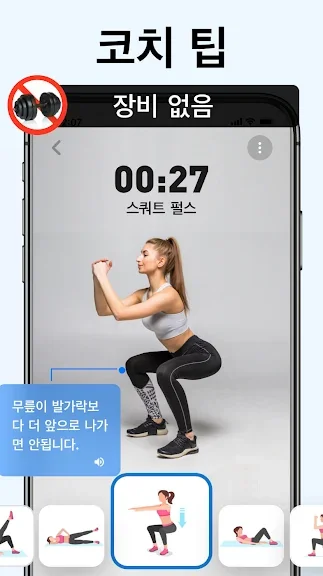 애니메이션 및 동영상 도움을 통해 운동 할 때마다 올바른 몸의 형태를 유지할 수 있습니다. 아무런 장비도 필요 없으므로 언제 어디서나 쉽게 운동 할 수 있습니다.