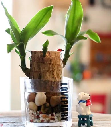 행운목은 나무 토막에서 잎이 돋아난 듯한 모습을 가지고 있습니다. 수경 재배로도 쉽게 키울 수 있어서, 물이 든 그릇에 담아두기만 해도 성장이 잘 이루어집니다. 다만, 물이 계속해서 고여 있으면 부패할 수 있으므로 주기적으로 갈아주는 것이 좋습니다. 수경 재배 시 영양분이 부족할 때에는 액체 비료를 사용하여 물에 섞어주면 잎이 건강하게 자랍니다.