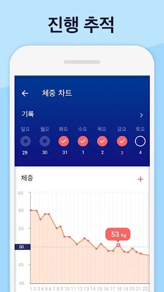 비만이거나 관절에 문제가 있는 사람들을 위한 충격이 적은 옵션 제공. 헬스장도 필요 없고, 장비도 필요 없습니다. 자신의 체중을 사용해 지방을 빼고 근육을 키우세요. 그래프로 태운 칼로리를 추적하고 체중 감량 진행을 확인할 수 있습니다.