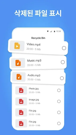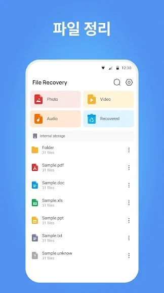 다른 파일 유형 복구: 사진과 비디오 외에도 이 어플리케이션은 음성 파일, 문서, 압축 파일 및 APK 파일의 복구를 지원합니다.