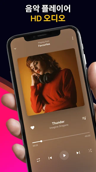 세련되고 간단한 사용자 인터페이스로 음악 감상을 즐기세요. 뮤직 플레이어는 완벽한 선택입니다. 마음에 드는 색상 테마 또는 플레이어 테마 역시 선택할 수 있습니다.