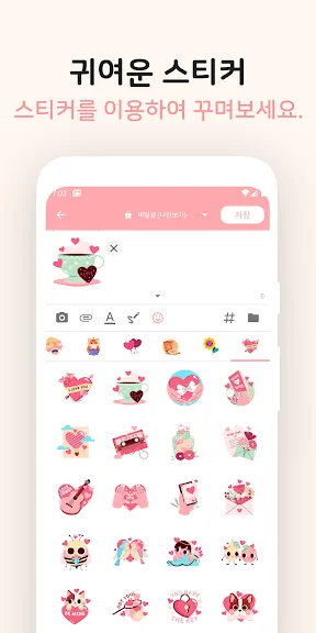 - 다양하고 사랑스러운 스티커와 이모티콘이 지속적으로 업데이트됩니다. 비밀 일기장에 당신의 기분을 표현할 때 사용하세요.