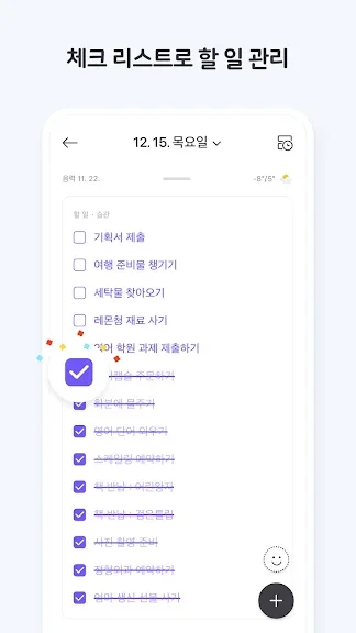 일정 뿐만 아니라 할 일을 간단하게 입력하고, 반복되는 기념일도 쉽게 등록할 수 있습니다.