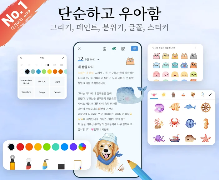사용자가 원하는 대로 쉽고 예쁜 일기 쓰기 앱 – 언제나 당신의 스타일대로