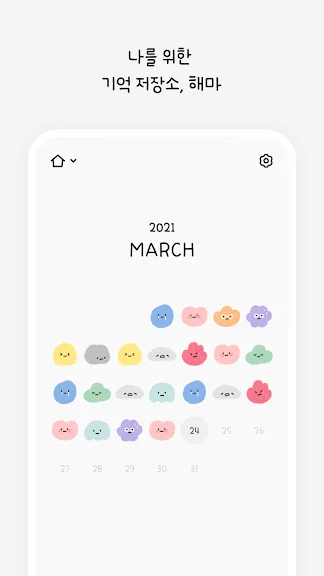 움직이는 감정 캐릭터로 기분을 기록하고, 달력에서 한눈에 확인할 수 있어요.
