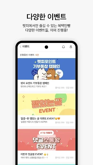 매주매주 바뀌는 다양한 이벤트가 열려요. 들어오셔서 미션, 퀴즈, 체험단 등 신청하다보면 행운이 찾아올거에요.