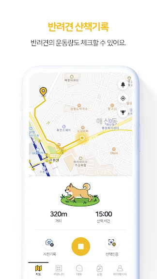 산책 기록으로 반려견과 얼마나 산책했는지, 이동 경로와 소모 칼로리도 측정할 수 있어요.