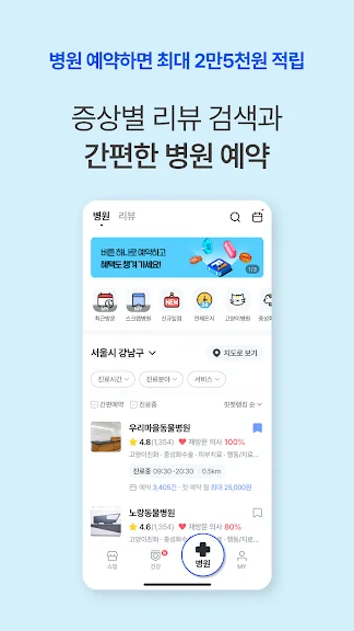 동물병원 간편 예약 시, 월 최대 2만 5천원 적립금으로 돌려드려요.