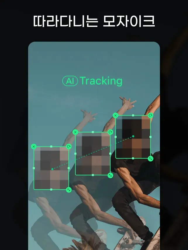 + 'AI 트래킹' 기능을 적용하여 1번의 탭으로 모자이크가 움직이는 대상을 자동으로 따라다니도록 편집할 수 있습니다.