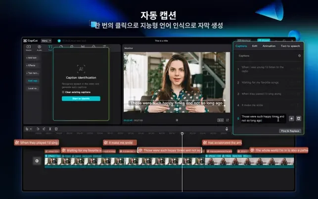 + 'AI자동 자막' 기능으로 1번의 탭만으로 말자막을 자동으로 생성할 수 있습니다.