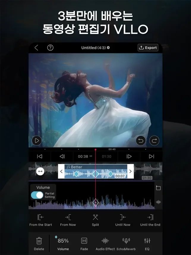 VLLO는 직관적인 UI로 1분만에 익힐 수 있는 쉬운 영상편집앱입니다.