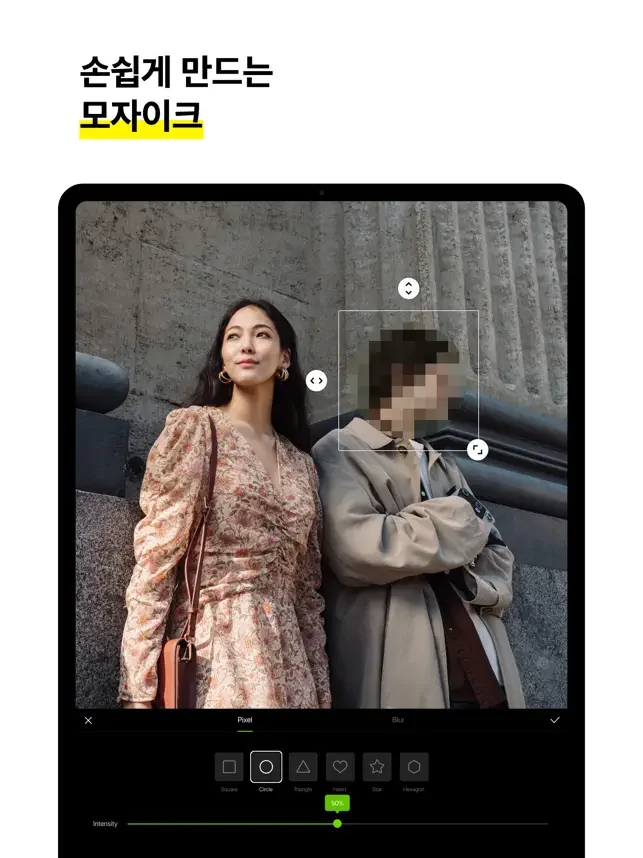 • 모자이크 기능으로 쉽고 자연스럽게 얼굴, 대상 가리기
