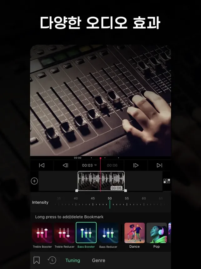 + 오디오 페이드인/아웃 효과로 프로페셔널하게 마무리하세요.