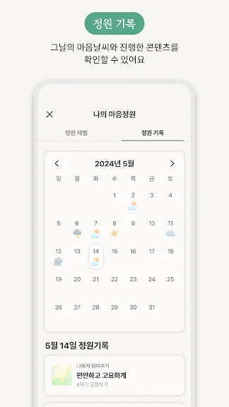 - 매일 매일 달라지는 마음정원 컨텐츠