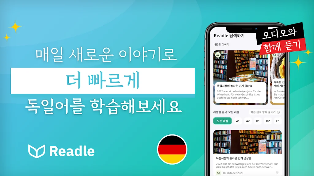 Readle독일어: 읽기, 듣기, 어휘, 사전 및 문법 어플을 만들어 주신 개발자님 감사합니다~