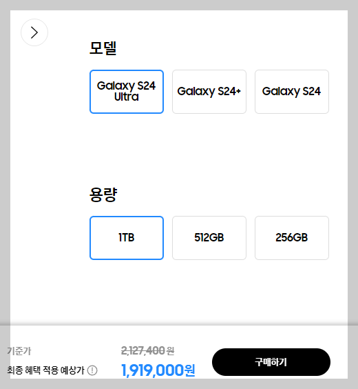 갤럭시 S24 울트라 1TB 는 삼성닷컴 홈페이지에서