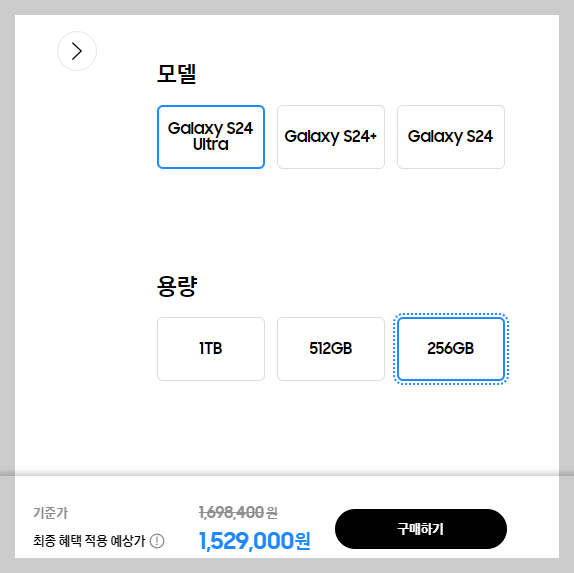 갤럭시 S24 울트라 256G 는 삼성닷컴 홈페이지에서