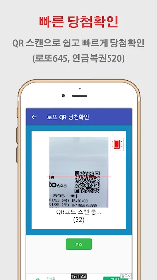 QR코드를 스캔하면 구매한 로또 번호를 간편하게 입력하고, 당첨 여부를 확인할 수 있습니다. 이외에도 당첨 시뮬레이션 기능을 통해 실제로 당첨됐을 때의 결과를 예측해볼 수 있습니다.