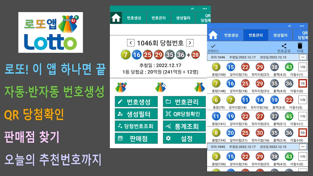 로또 번호를 선택하고 관리하는 데 필요한 모든 기능을 한 곳에서 제공하는 이 앱으로, 더 체계적이고 스마트하게 로또를 즐길 수 있습니다.