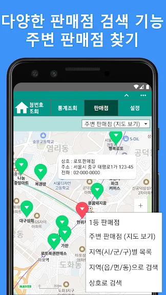 앱 내에는 로또 구매 이력을 관리할 수 있는 기능과, 번호 조합, 과거 번호와의 비교 분석 도구가 포함되어 있어, 더 정교한 번호 선택이 가능합니다. 로또 판매점을 검색하고, 당첨 판매점 정보를 열람할 수 있는 기능도 제공하여, 로또 구매 시 유용하게 활용할 수 있습니다.
