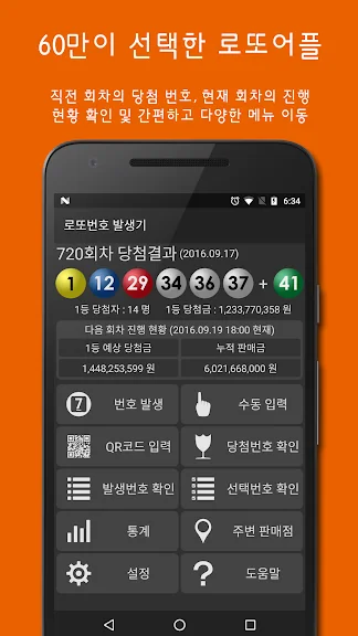 아래는 로또앱 - 로또번호생성기, QR스캔당첨확인 어플에 대한 스크린샷 정보입니다.