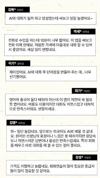 어플 사용 방법은 간단합니다. 자신의 학습 수준에 맞는 단계와 언어를 선택한 후, AI와 실시간으로 대화를 나누거나 제공된 학습 콘텐츠를 활용하면 됩니다. 학습 과정에서 단어장, 번역, 첨삭 기능 등 다양한 도구를 활용해 효율성을 극대화할 수 있습니다.