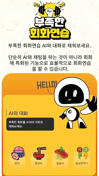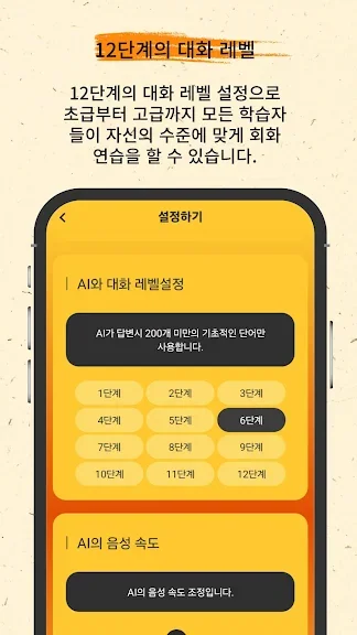 이 어플의 가장 큰 추천 이유는 AI의 자연스러운 발음과 음성 인식 기술입니다. 원어민과 대화하는 것 같은 경험을 제공하며, 12단계로 세분화된 수준 설정을 통해 모든 학습자에게 최적의 학습 환경을 제공합니다.