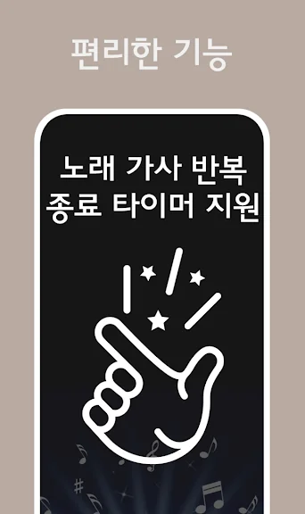 특히, 노래 검색 기능으로 원하는 곡을 빠르게 찾을 수 있으며, 음악 보관함 기능을 통해 자주 듣는 곡을 모아둘 수 있습니다. 화면이 꺼져도 음악 재생이 가능하고, 취침 타이머 기능으로 편리하게 음악을 종료할 수 있어 일상 속에서 유용하게 사용할 수 있습니다.