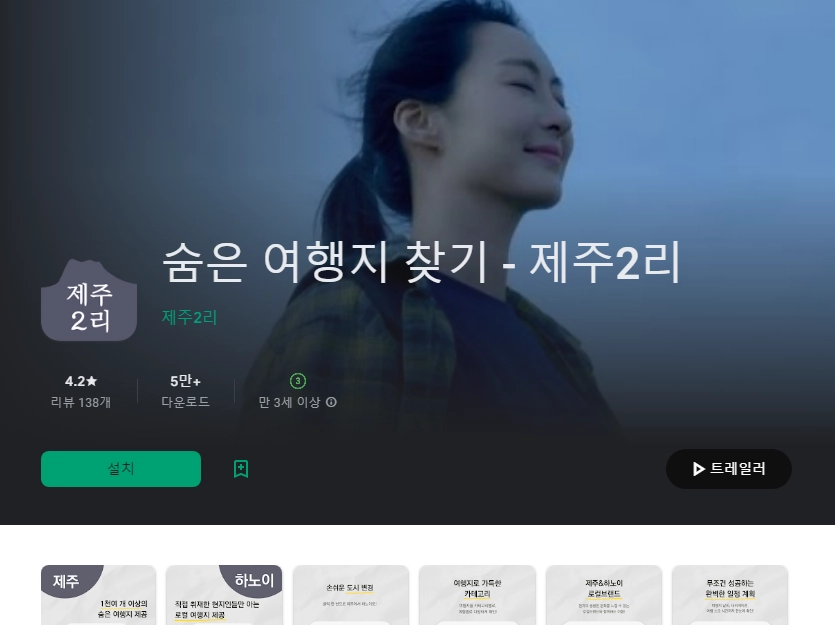 이 어플은 구글플레이스토어에서 "제주도 여행코스 추천"로 검색했을때 5번째로 나오는 어플입니다. 아래는 숨은 여행지 찾기 - 제주2리 어플에 대한 자세한 설명이니 참고하세요.