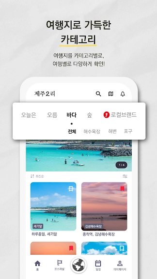-여행자들 각자의 취향을 위해 세분화된 여행지메뉴 제공(오름,바다,숲,독립서점 등)