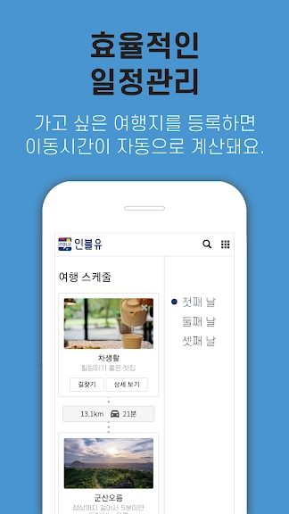꼭 가야할 플레이스를 일정에 추가하면 이동시간을 자동으로 계산해드립니다.