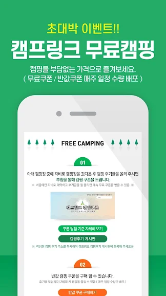 - 무료 캠핑 쿠폰, 반값 쿠폰