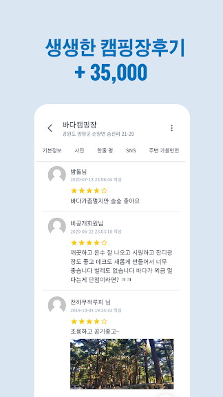 - 캠퍼들의 진찌 리얼 한줄 평 보기 (16만개 캠핑장 실시간 평)