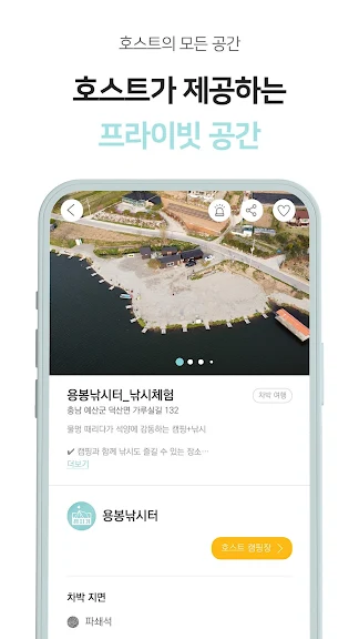 호스트의 특별한 공간을 캠지기가 책임지고 공유하여 캠퍼 분들이 머물 수 있어요. 캠퍼 분들이 머무는 동안 해당 공간의 호스트가 제공하는 특별한 체험도 경험해 보세요! 바닷가의 공간이라면 바다와 관련된 체험을, 산과 계곡의 공간이라면 산에서 할 수 있는 체험을 제공합니다. 특별한 공간에서 재미있는 체험도 함께 경험할 수 있어요.