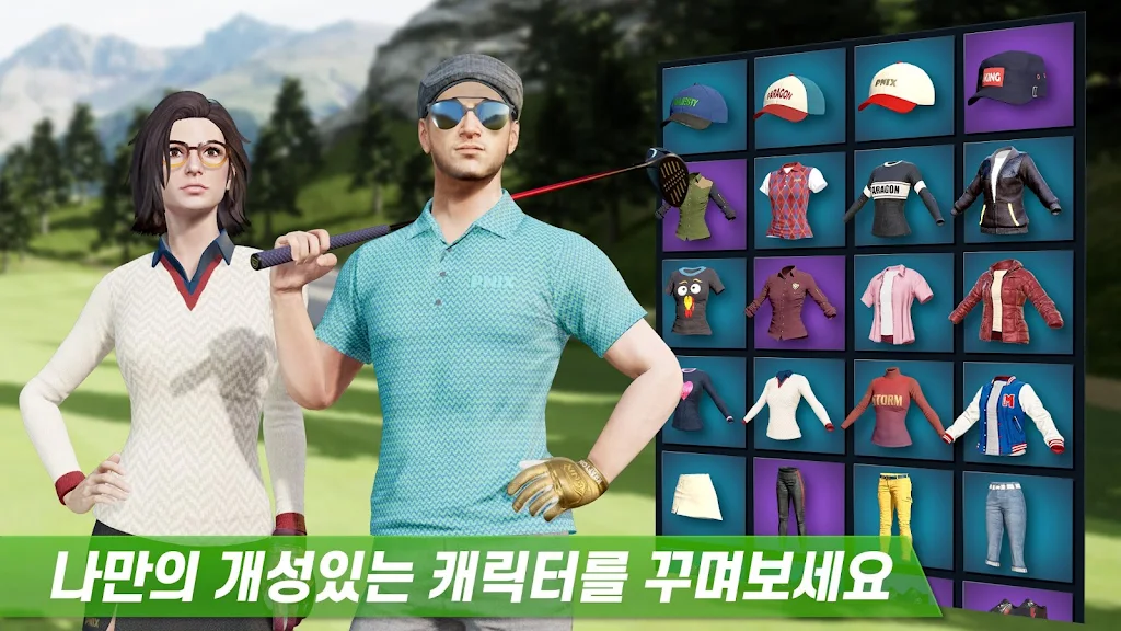 다채로운 복장 커스터마이징을 통해 나만의 골프 선수를 꾸며보세요. 캐릭터, 모자, 안경, 상의, 하의, 슈즈의 끝없는 조합이 가능합니다. 최고의 클럽하우스와 캐디를 모아 더 많은 혜택을 얻을 수 있습니다.