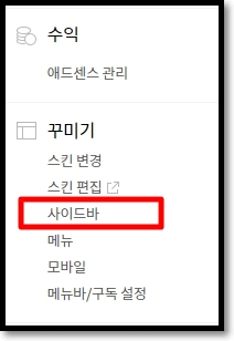 ▲ 관리자 페이지에서 왼쪽 메뉴 중에 스킨 편집을 눌러주세요