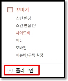 ▲ 티스토리 관리자 페이지에서 플러그인을 클릭합니다.