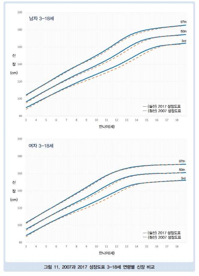 [3~18세 신장(키) 비교 그래프]