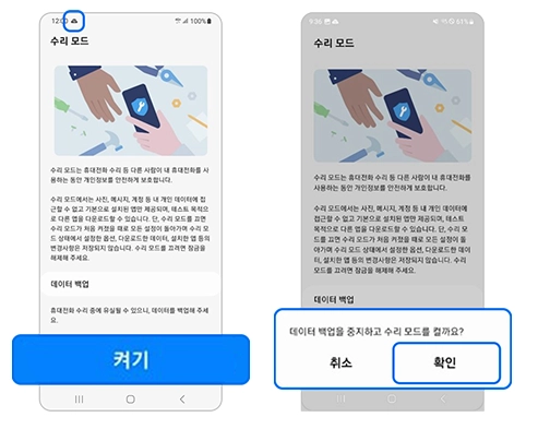 ※ 백업 중/복원 중/백업 중단 상태에서 수리모드를 켜지 않도록 주의하여 주시기 바랍니다.