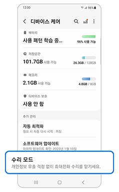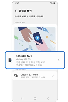 디바이스 케어 > 수리 모드 > 데이터 백업하기 > 삼성 클라우드로 백업하기 > 데이터 복원