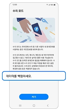 ※ 수리 모드의 클라우드 임시 백업 기능을 사용하기 위해서는 삼성 계정, Wi-Fi 사용이 필요합니다. (모바일 데이터 사용 불가)