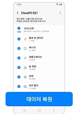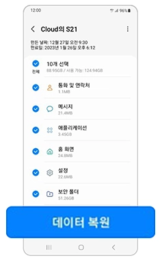 백업을 진행하였던 삼성 계정과 동일한 계정으로 기기에 로그인 되어 있다면 기간 내 삼성 클라우드를 통하여 언제든 데이터 복원이 가능합니다.