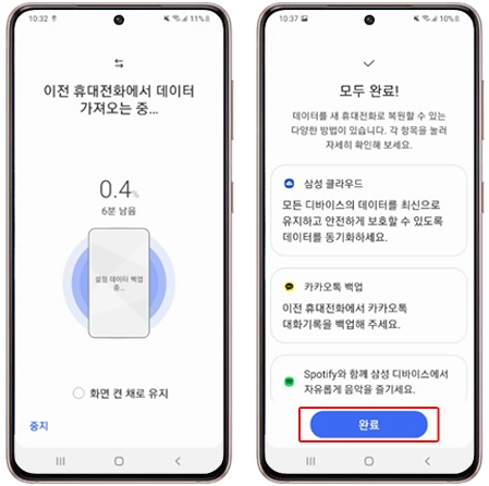 새 휴대폰에서 기존 휴대폰 데이터 가져오는 방법(무선 연결)